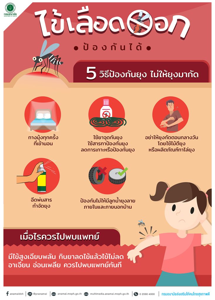 5. ระวังอย่าให้ยุงกัดในเวลากลางวัน ให้นอนกางมุ้ง หรือทายากันยุง